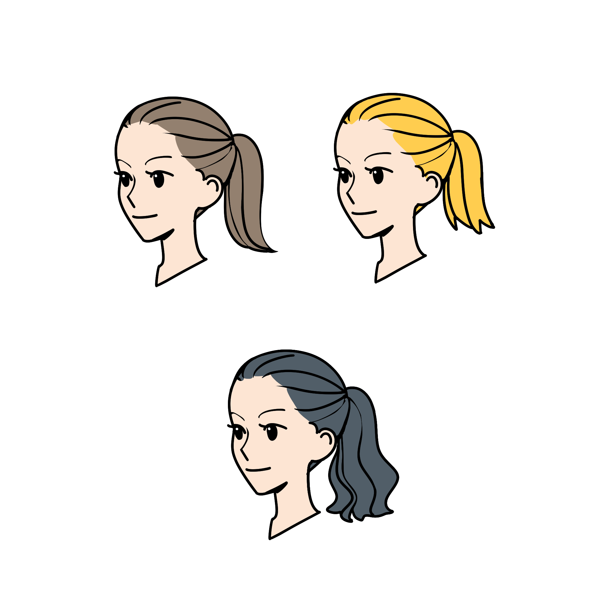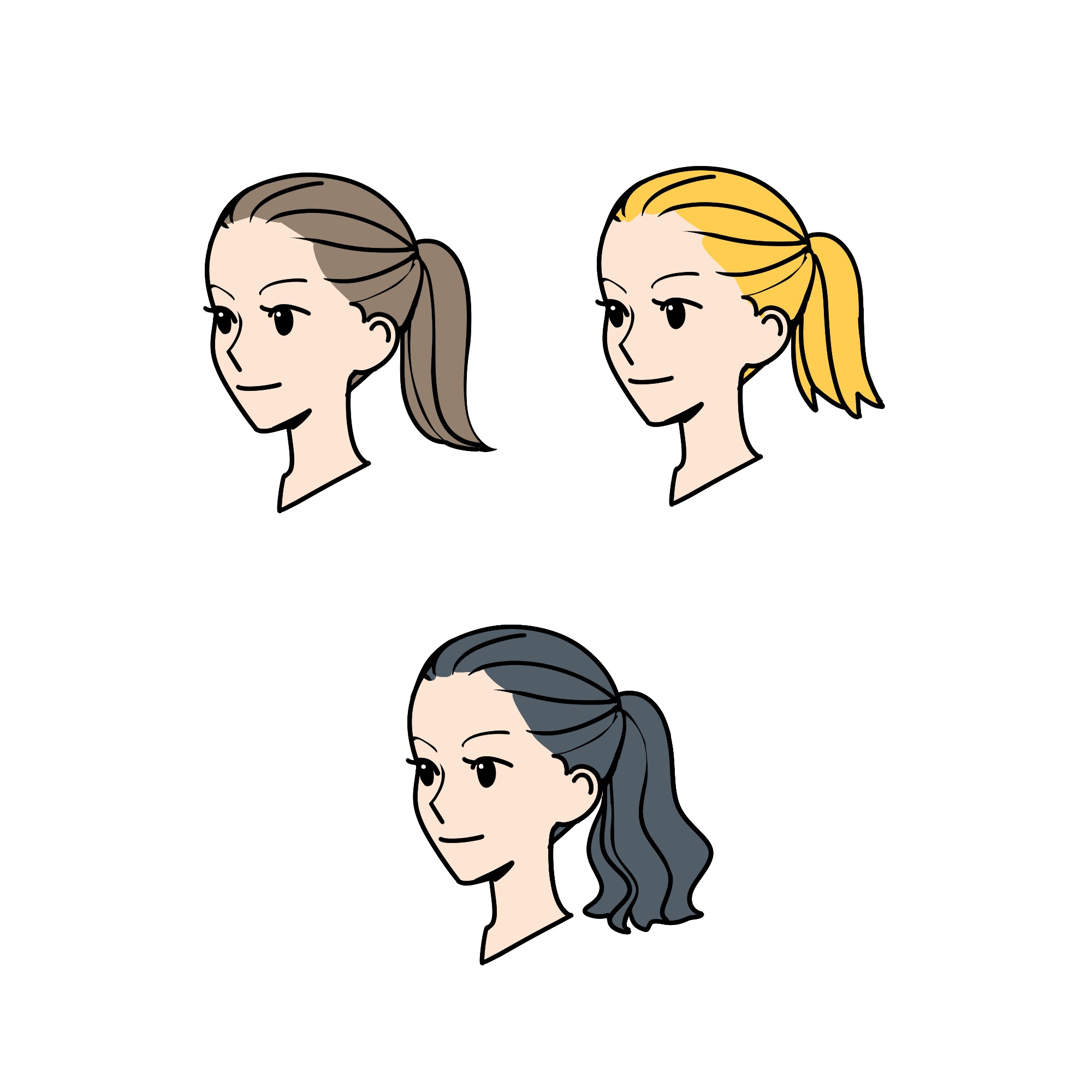 オールバックのポニーテール(黒髪)