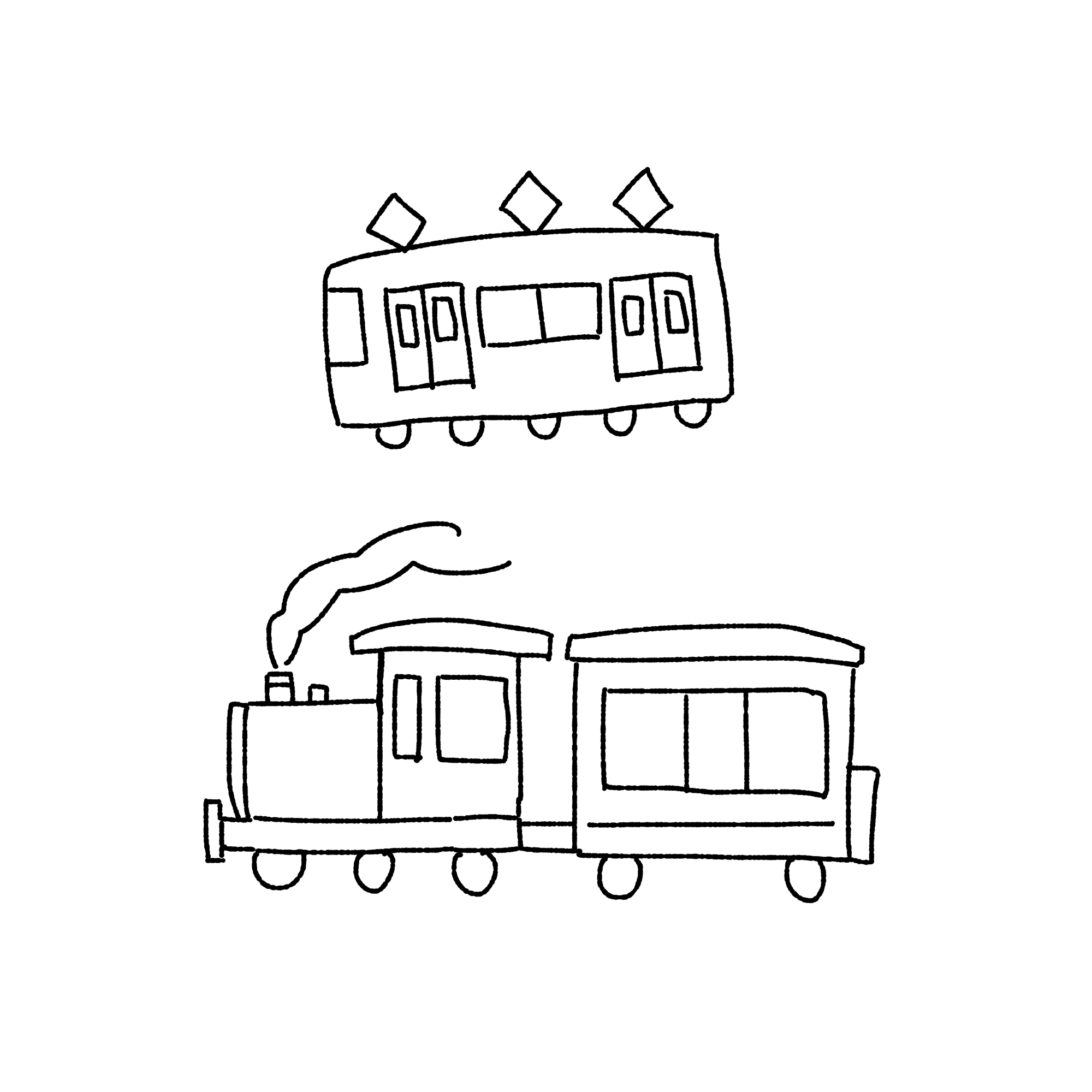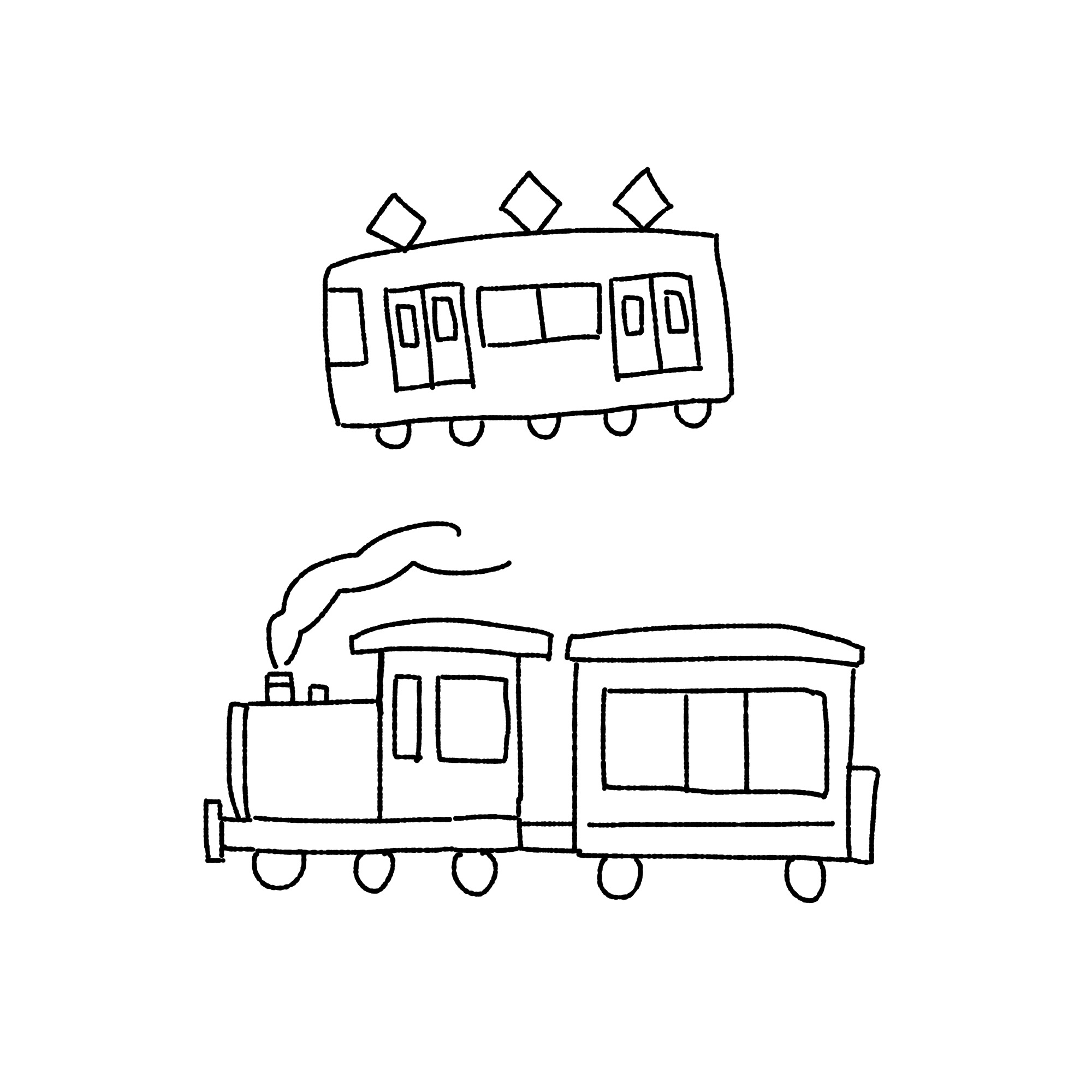 手書きの簡単な電車(シンプル)