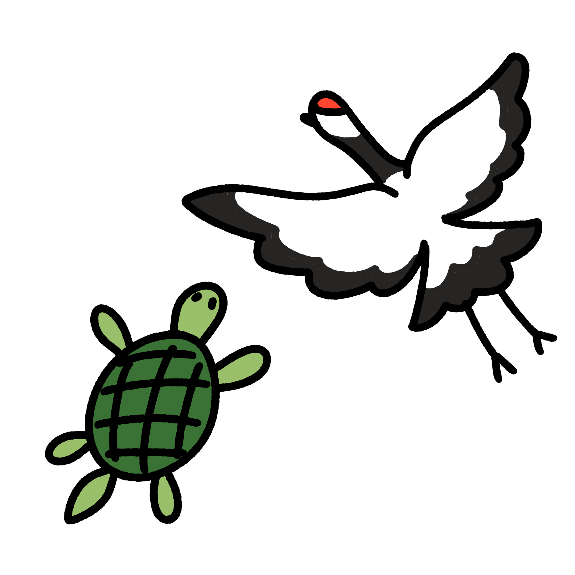 手書きの鶴と亀